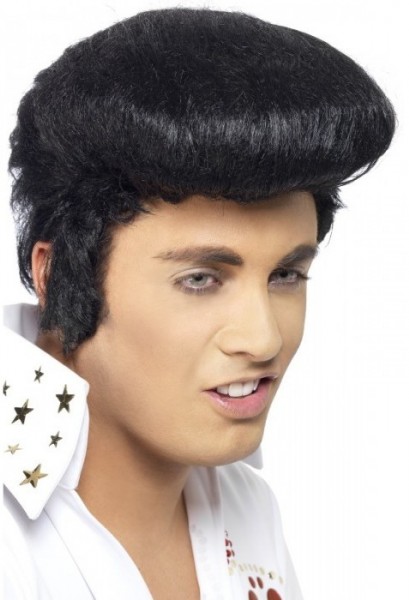Elvis Deluxe Wig, Black, with High Quiff & Sideburns