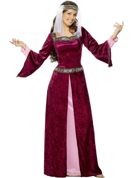 Product Description: Maid Marion Costume, Burgundy, with Dress & Headpiece Robin Hood won't be able to resist you in the Maid Marion Costume. Included in this authentically styled fancy dress costume is a dress and headpiece.